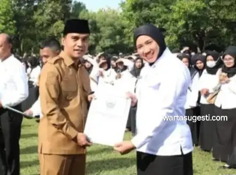 WartaSugesti.com // Bangkalan – Bupati Bangkalan, Lukman Hakim, S.Ip., M.H., menegaskan bahwa penyerahan Surat Keputusan ( SK ) Pegawai Pemerintah dengan Perjanjian Kerja ( PPPK ) Paruh Waktu merupakan bentuk komitmen pemerintah daerah dalam menata status kepegawaian, menghapaus tenaga kerja non ASN dan sekaligus memberikan kepastian hukum bagi tenaga honorer yang telah lama mengabdi.