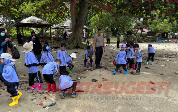 BALIKPAPAN – Dalam upaya menjaga kelestarian kawasan pesisir sekaligus menumbuhkan kesadaran akan pentingnya ketahanan pangan, Satbrimob Polda Kaltim menggelar kegiatan bersih pantai, penanaman jagung, serta edukasi tugas dan fungsi Brimob kepada siswa TK Jabalussu’ada Balikpapan di Pantai Wajracyena, Satbrimob Polda Kaltim, Kamis (16/4/2026).