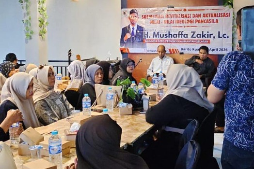 BATOLA – Anggota DPRD Kalimantan Selatan (Kalsel), H. Mushaffa Zakir kembali menyosialisasikan Revitalisasi dan Aktualisasi Nilai-Nilai Ideologi Pancasila dengan warga, di Cafe Rzed Kabupaten Barito Kuala (Batola), Minggu (26/4/2026) sore.